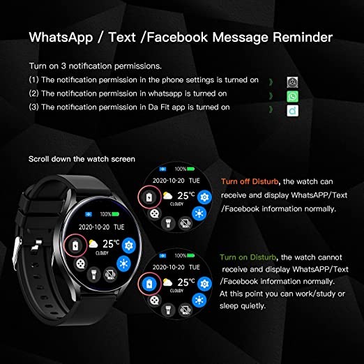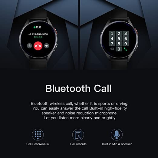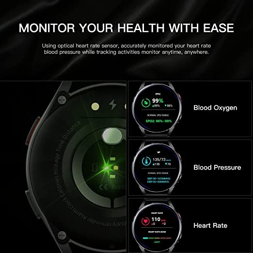 HOAIYO Smart Watch for Android iOS Men and Women, 1.3 Inch Full Touch Screen, 3 ATM Waterproof Fitness Wristband, Heart Rate, Sleep Monitor, SpO2, Music Control, Sports Watch...(Black, 1.3 Inch)