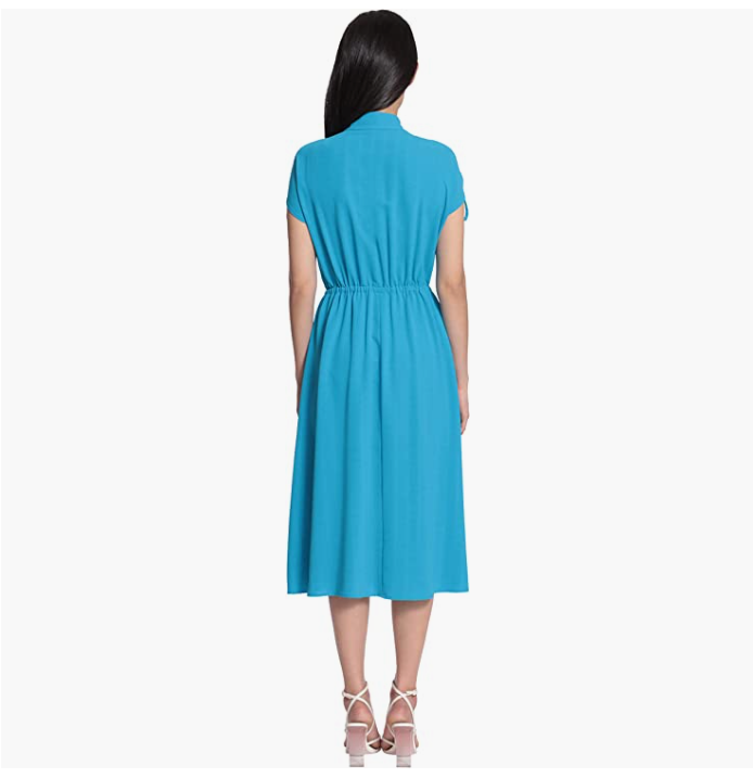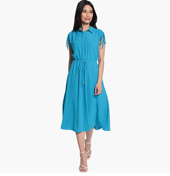Maggy London Women's Collared Drawstring Waist and Shoulders Mid Length With Concealed 1/2 Fly