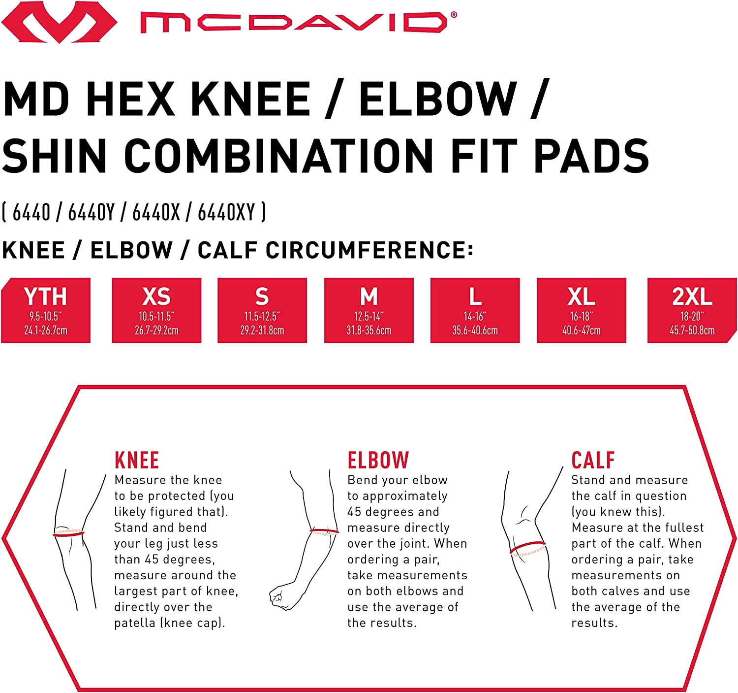 Mcdavid 6440 Hex Knee Pads/ Elbow Pads/ Shin Pads for Volleyball, Basketball, Football & All Contact Sports, Youth & Adult Sizes, Sold as Pair (2 Sleeves)