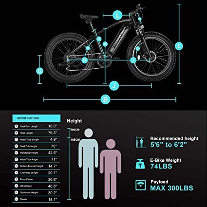 VELOWAVE Electric Bike Adults 750W BAFANG Motor 48V 15Ah Removable LG Cells Battery 26'' Fat Tire Ebike 28MPH Snow Beach Mountain E Bike Shimano 7-Speed